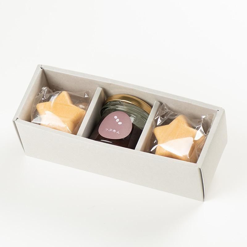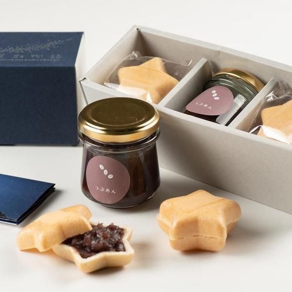 粒あんと鳥取・大山産の有機栽培茶大山抹茶あんの二種類から選べます。 瓶に入ったあんこはたっぷりあるので余ったらトーストにもgood。 好きなだけあんをすくって星形の皮につめたらわたしだけの「しあわせ願い星」が出来上がり。