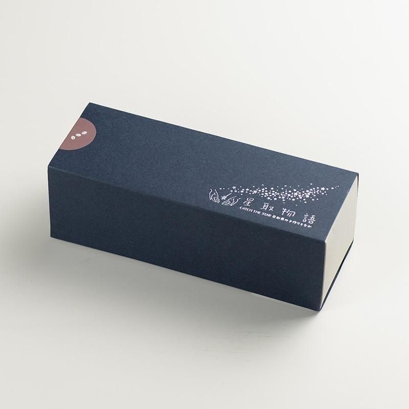 星取県にちなんだ和菓子として誕生した「しあわせ願い星」。 箱を開けると鳥取の星空の名所がフォトグラファー豊哲也さんの撮影した美しい写真と共に広がり、一つずつ物語が語られています。