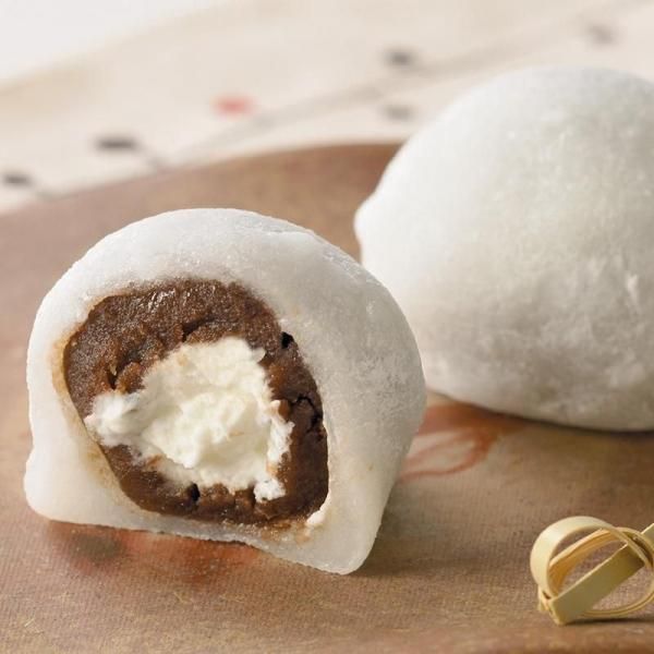 白い求肥餅の中は”コーヒーあん”と生クリームが入っています。